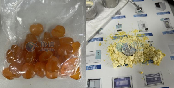 實驗目的:軟糖研磨,本次實驗對象為食用各種軟糖,需要液氮輔助研磨,后續成分分析,要求達到細度的同時把效率提高。