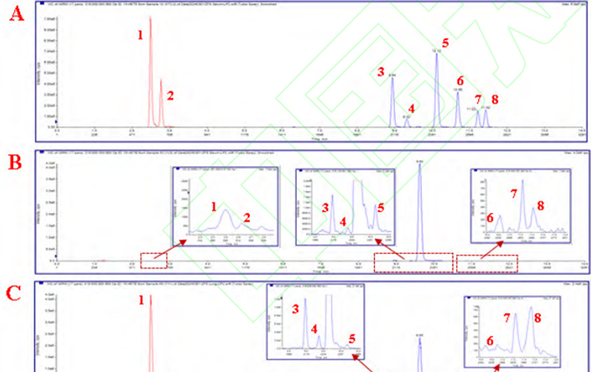 在此基礎(chǔ)上通過(guò)超高通量組織研磨儀和真空離心濃縮儀進(jìn)行優(yōu)化實(shí)驗(yàn)步驟,超高通量組織研磨儀使樣品均質(zhì)化更徹底,方便后續(xù)萃取;真空離心濃縮儀補(bǔ)充了溶液蒸發(fā)過(guò)程中的爆沸,減去了添加飽和NaCl的步驟,減少后續(xù)離子干擾,使本實(shí)驗(yàn)方法更快速安全,靈敏準(zhǔn)確。