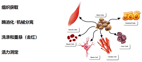 從組織獲得存活單細(xì)胞是一個(gè)復(fù)雜過程,目前市面上組織單細(xì)胞化的方法有采用機(jī)器處理或者人工處理方法,以上處理方法均存在處理時(shí)間長、細(xì)胞處于逆境狀態(tài)時(shí)間長、細(xì)胞得率低、細(xì)胞存活率低、操作繁瑣等問題。單細(xì)胞懸液儀結(jié)合特定組織松解劑,快速、輕柔、安全、簡捷、高效、自動(dòng)化的從組織如(脂肪、骨骼肌、動(dòng)脈血管內(nèi)皮、心臟、肝臟、脾臟、肺泡、腎臟、腦、腫瘤)30min內(nèi)全自動(dòng)完成組織單細(xì)胞的解離。