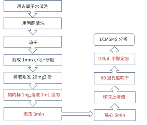 1. 規(guī)范中采用毛發(fā)清洗,晾干,剪碎,研磨后稱取的方案