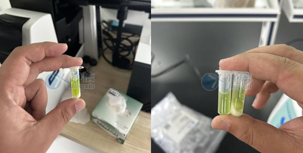 實驗目的:本次實驗對象為微藻,后續(xù)會做到核酸蛋白提取。作為微生物,且此類微藻細胞壁非常厚,研磨起來也是一個難點,要求研磨徹底,以便提高蛋白及核酸的濃度,涉及到蛋白、RNA提取還需要低溫研磨,之前用超聲破碎長時間也無法破碎,因為樣品本身是液體,所以溫度也不能太低,否則凍住液體無法研磨,經(jīng)過比較推薦,最終客戶選擇上海凈信全自動樣品快速組織研磨儀處理樣品。