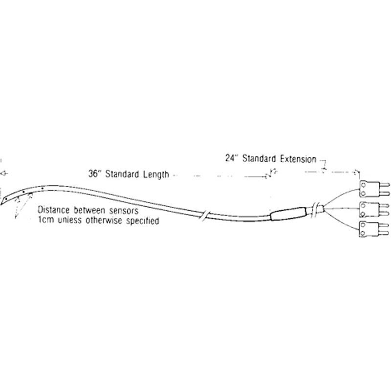 特氟龍護套熱電偶絲用常規(guī)皮下14ga. 或17ga.注射針頭植入。在訂購時,請指定:探頭系列(IT)、針距、傳感器數(shù)目和傳感器之間的距離。(例如:it-17(3)用17 Ga針植入和具有3個傳感器。除非另有說明,我們把傳感器分開從頂部算起1cm。)