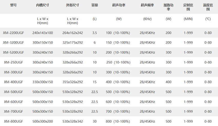 超聲波清洗機規(guī)格參數(shù):