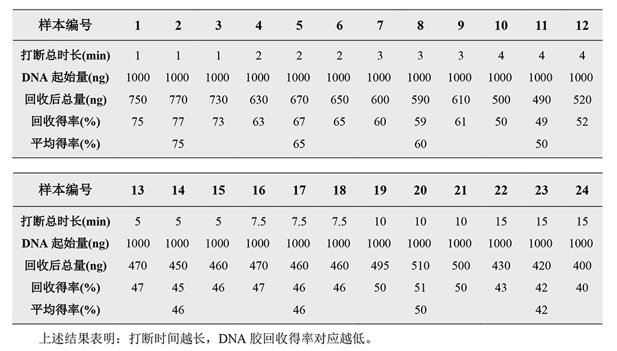 3、不同打斷時(shí)長(zhǎng)下的回收得率: