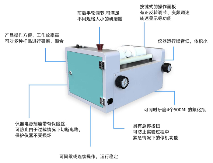 可同時(shí)研磨4個(gè)500ML的氟化瓶;
